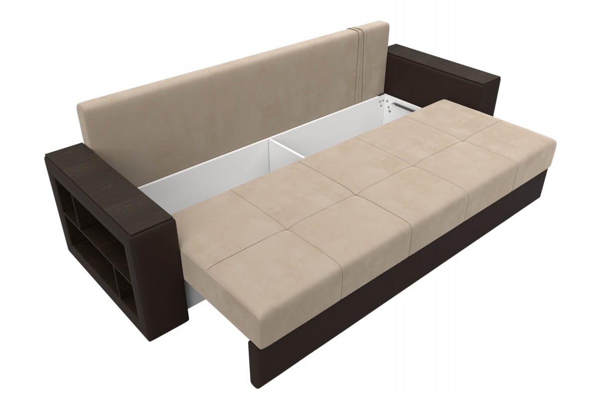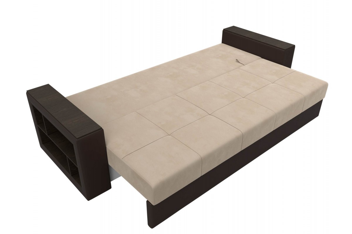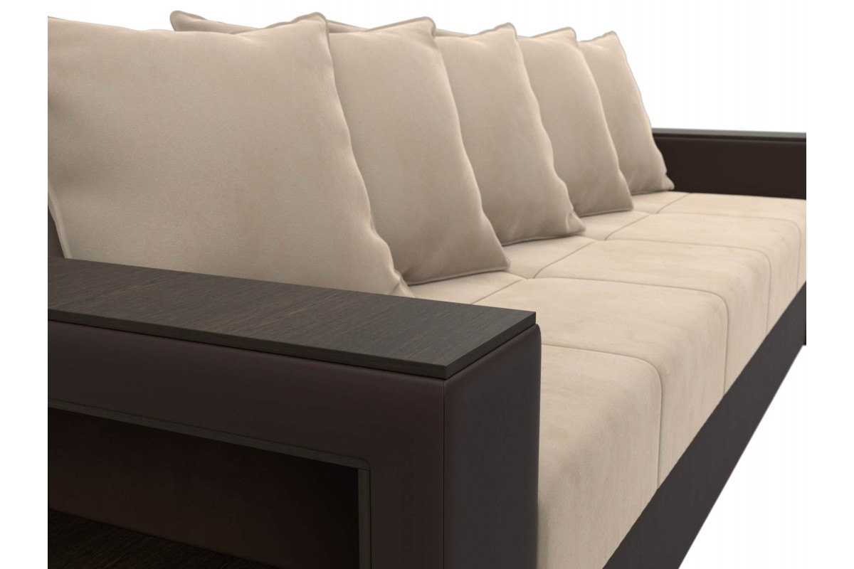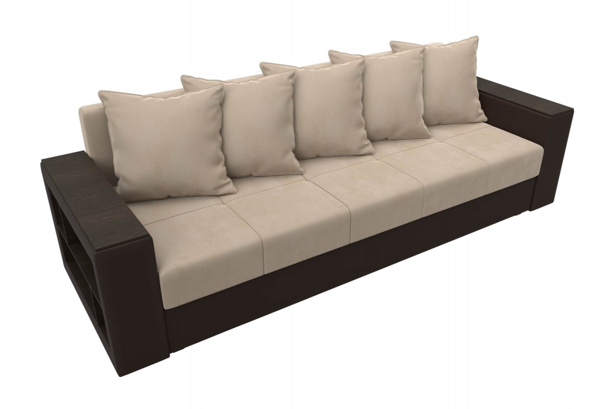 Диван Дубай Коричневый, Бежевый, Экокожа, Велюр, Еврокнижка, артикул: 10211287