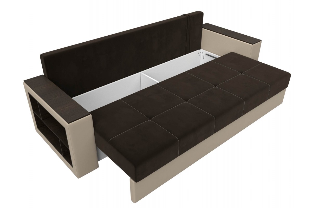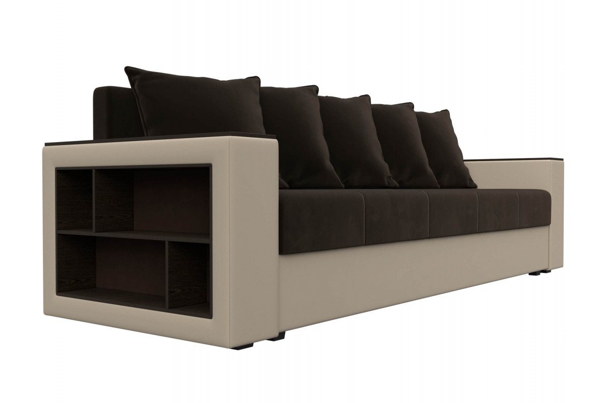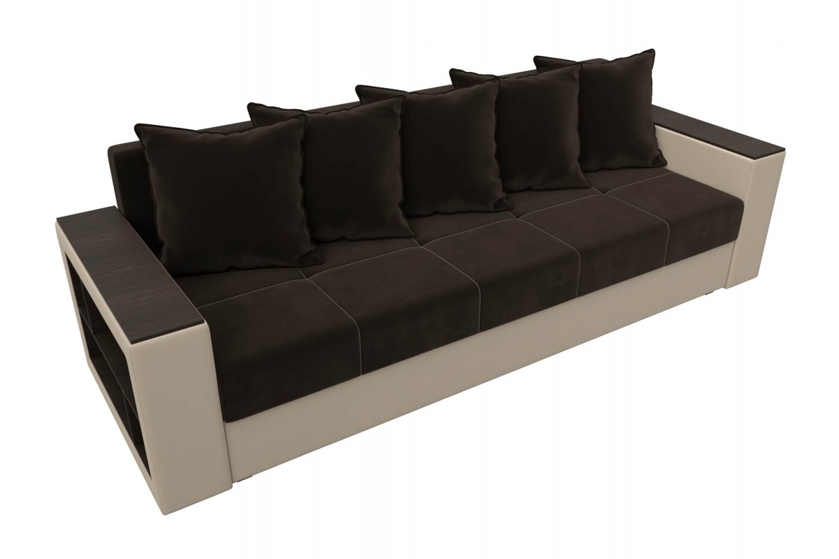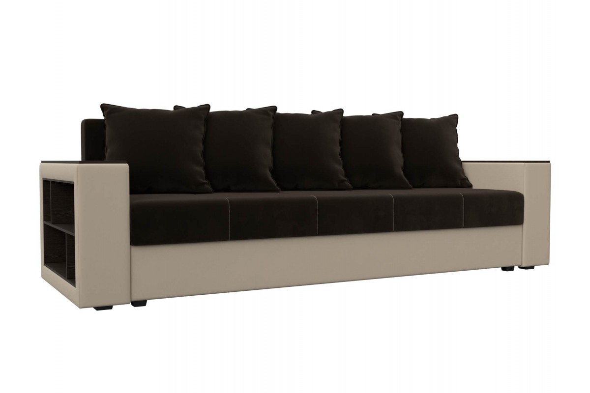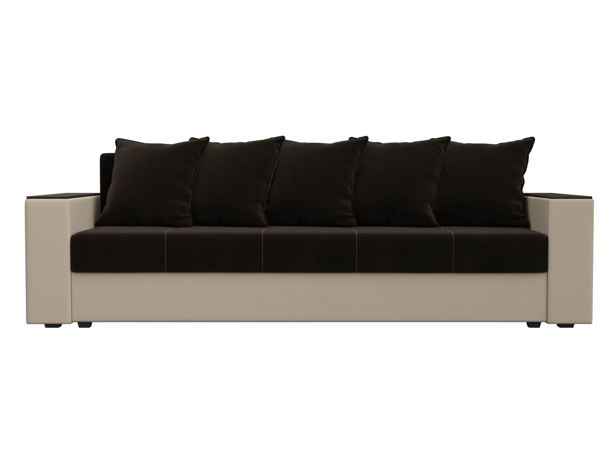Диван Дубай Коричневый, Бежевый, Экокожа, Микровельвет, Еврокнижка, артикул: 10211317
