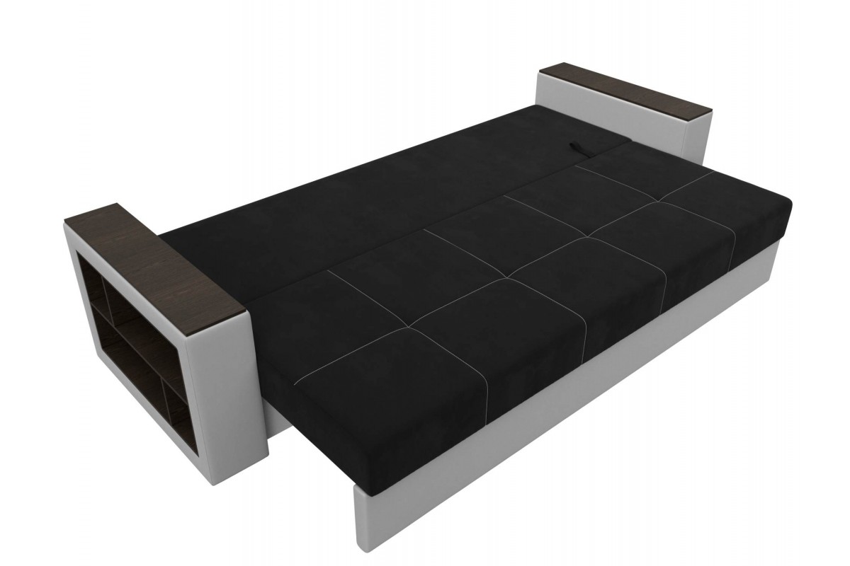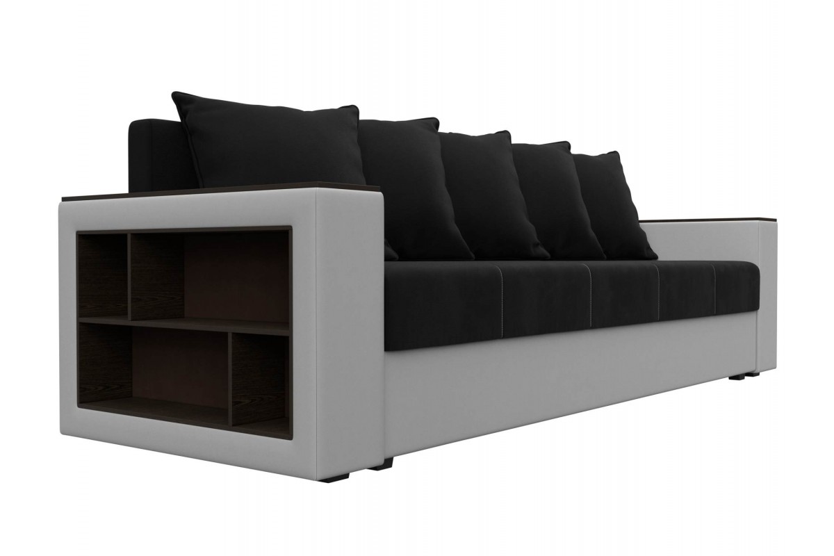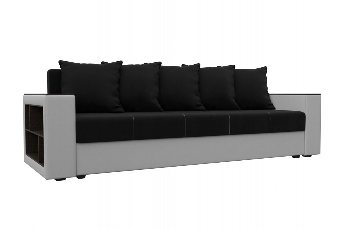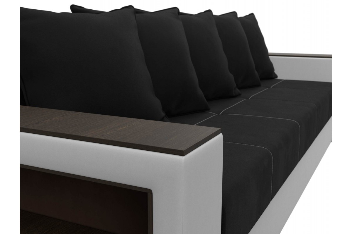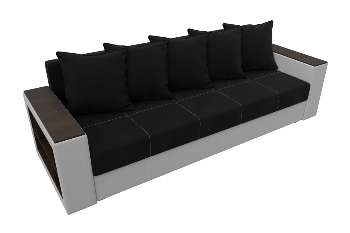 Диван Дубай Черный, Белый, Микровельвет, Экокожа, Еврокнижка, артикул: 10211325