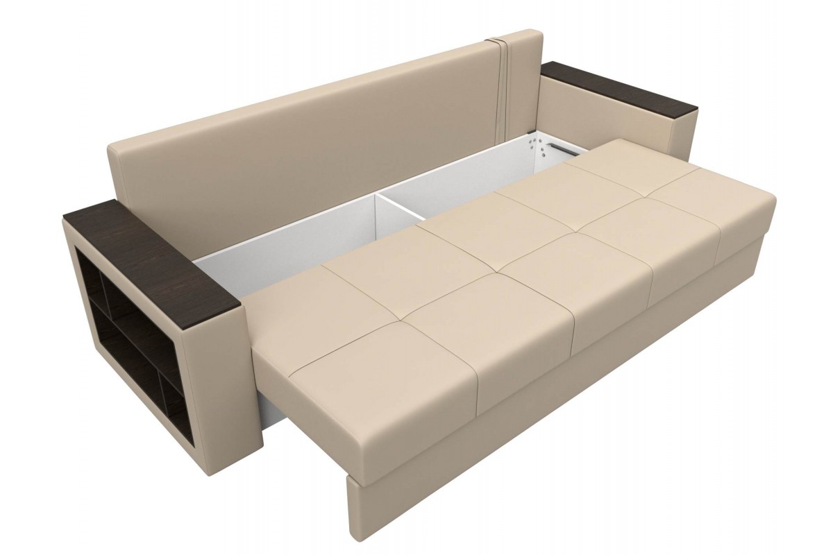 Диван Дубай Бежевый, Экокожа, Еврокнижка, артикул: 10211337