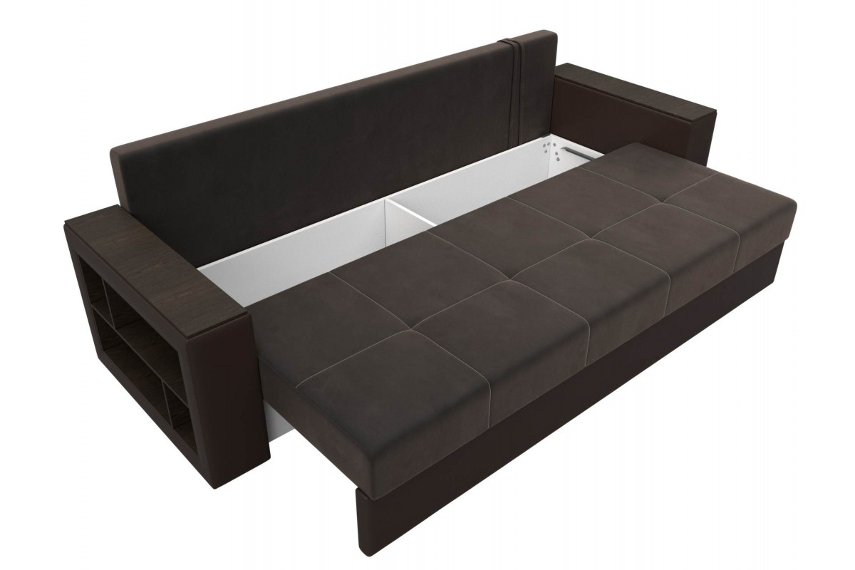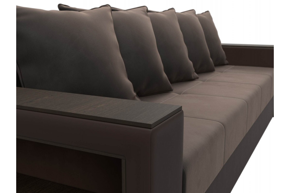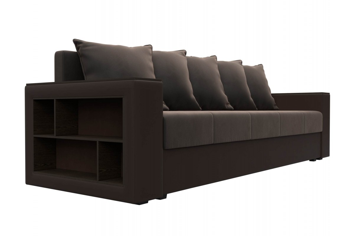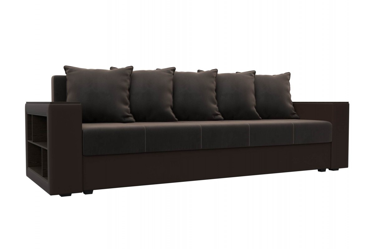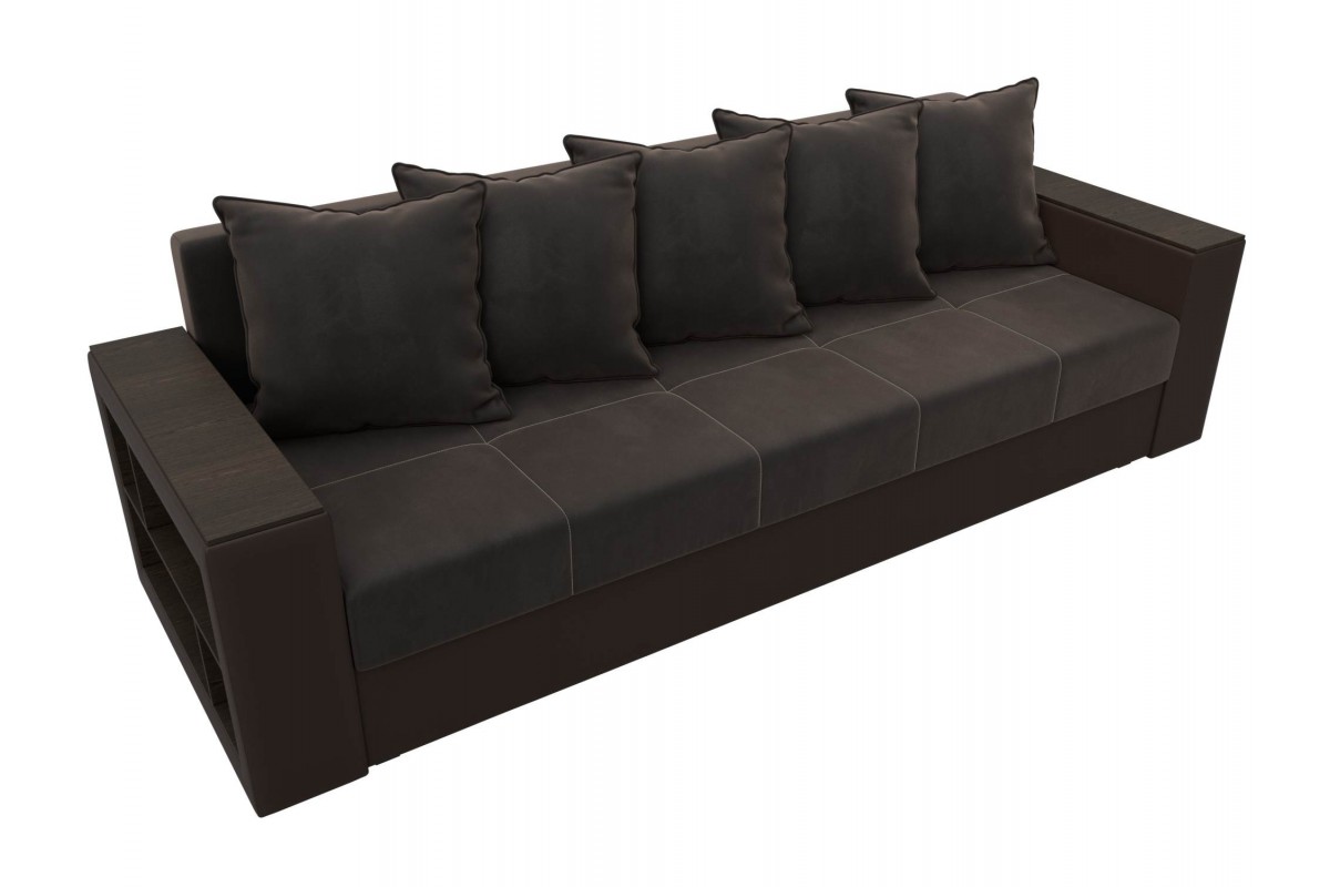 Диван Дубай Коричневый, Экокожа, Велюр, Еврокнижка, артикул: 10211295