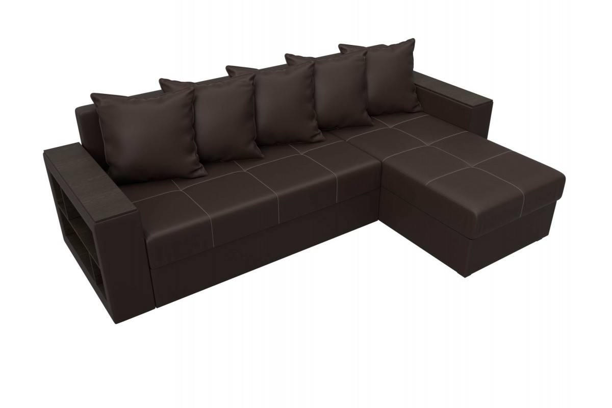 Диван угловой Дубай Коричневый, Экокожа, Еврокнижка, артикул: 10444388