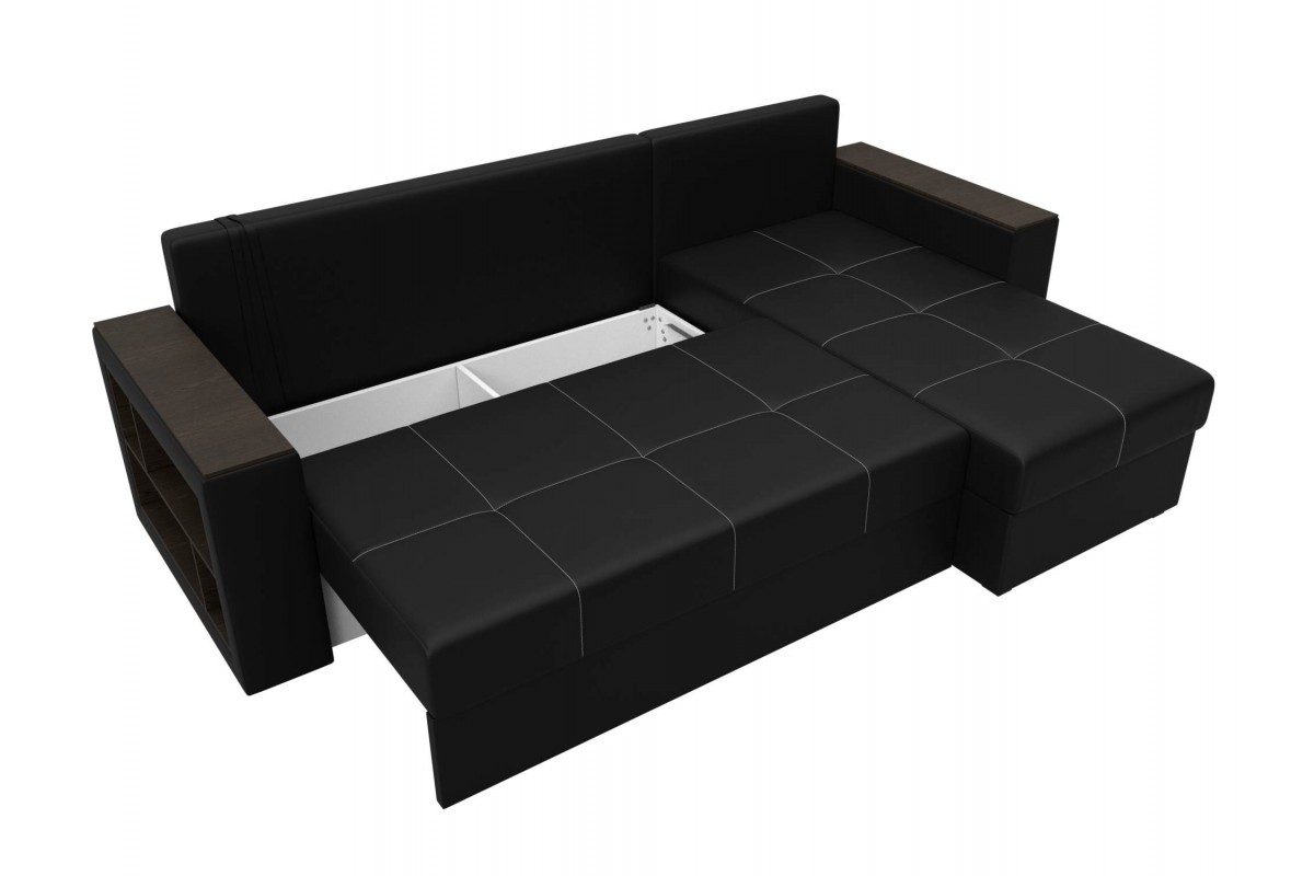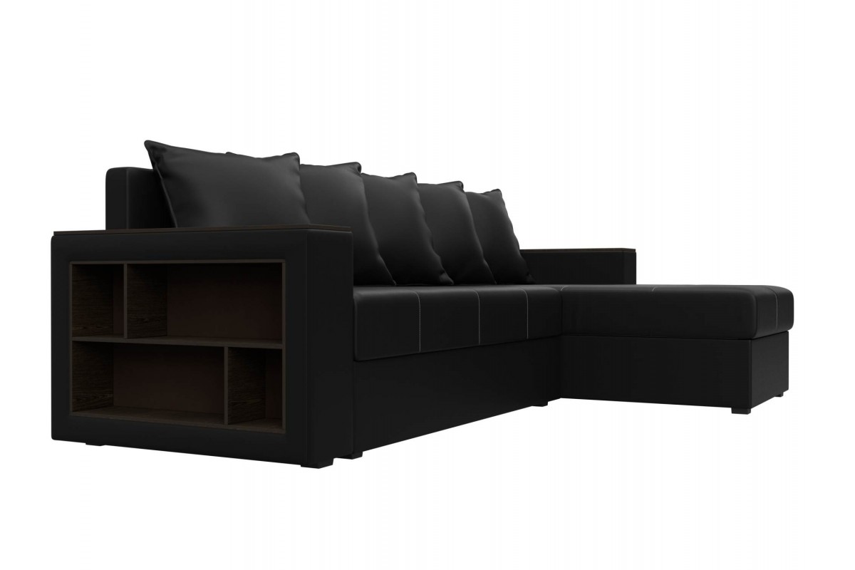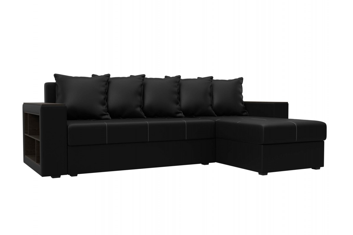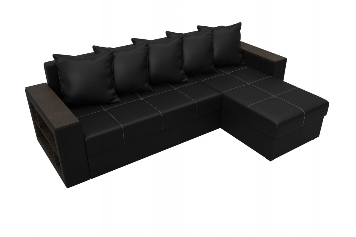 Диван угловой Дубай Черный, Экокожа, Еврокнижка, артикул: 10444384