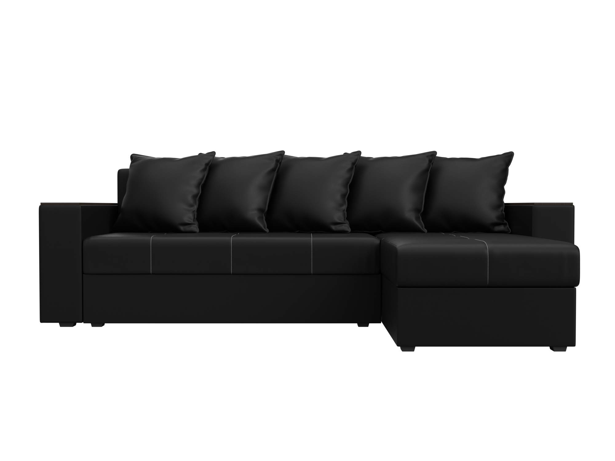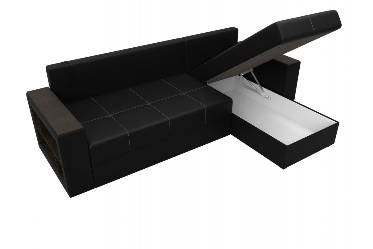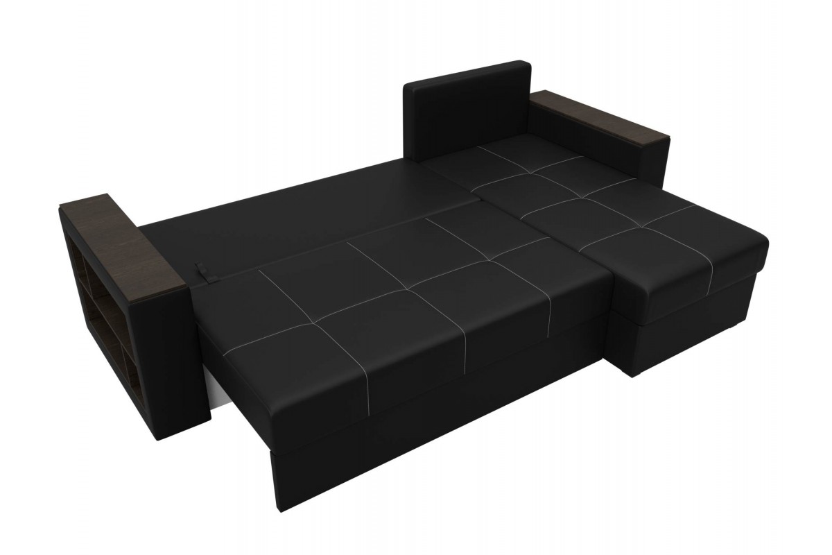 Диван угловой Дубай Черный, Экокожа, Еврокнижка, артикул: 10444384