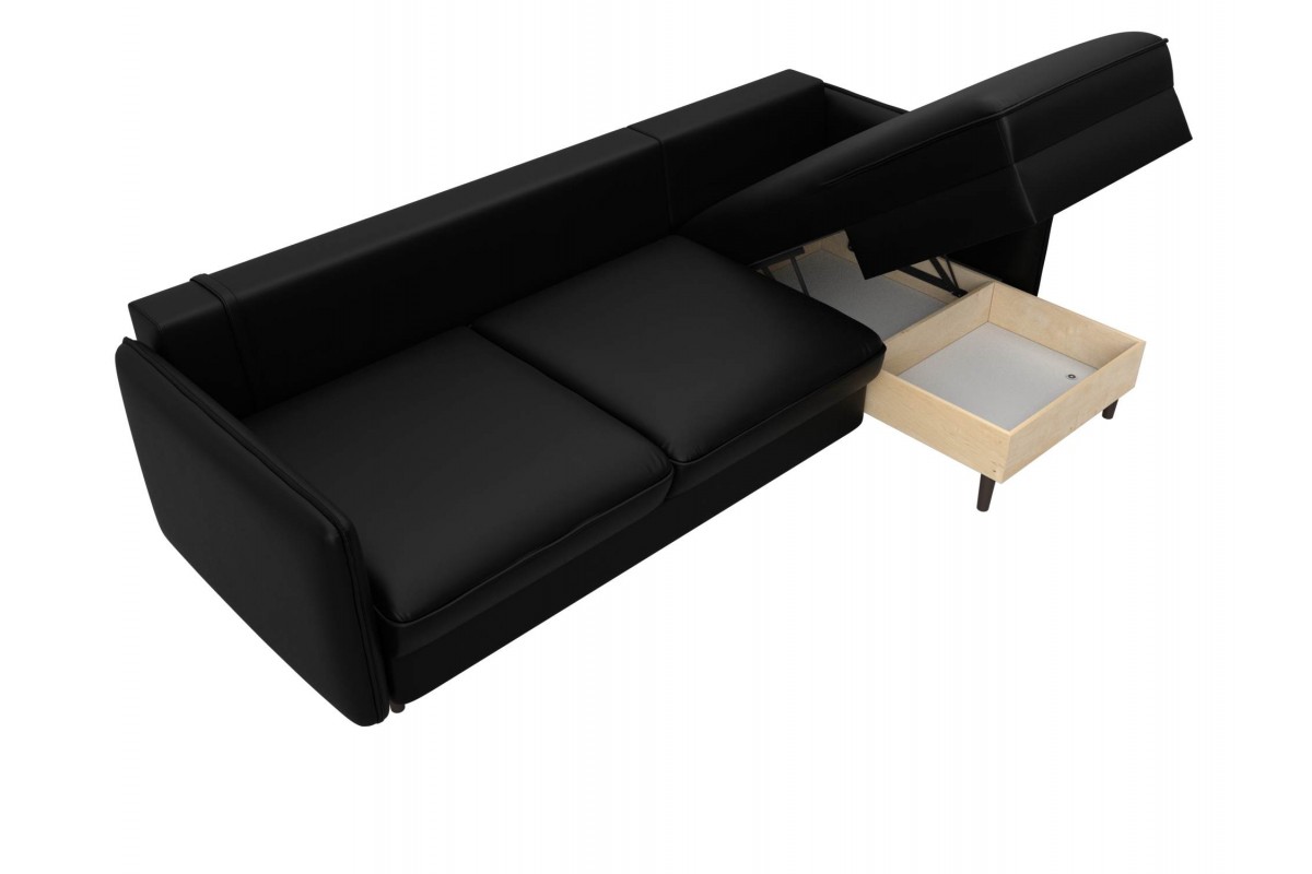 Диван угловой Лига-064 НПБ Черный, Экокожа, Пантограф, артикул: 10483252