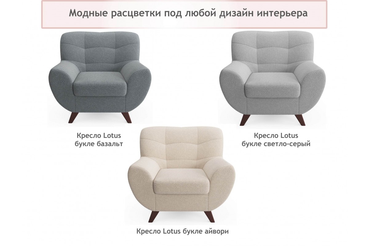 Дизайнерское мягкое кресло Lotus букле светло-серый , Букле, артикул: 10500977