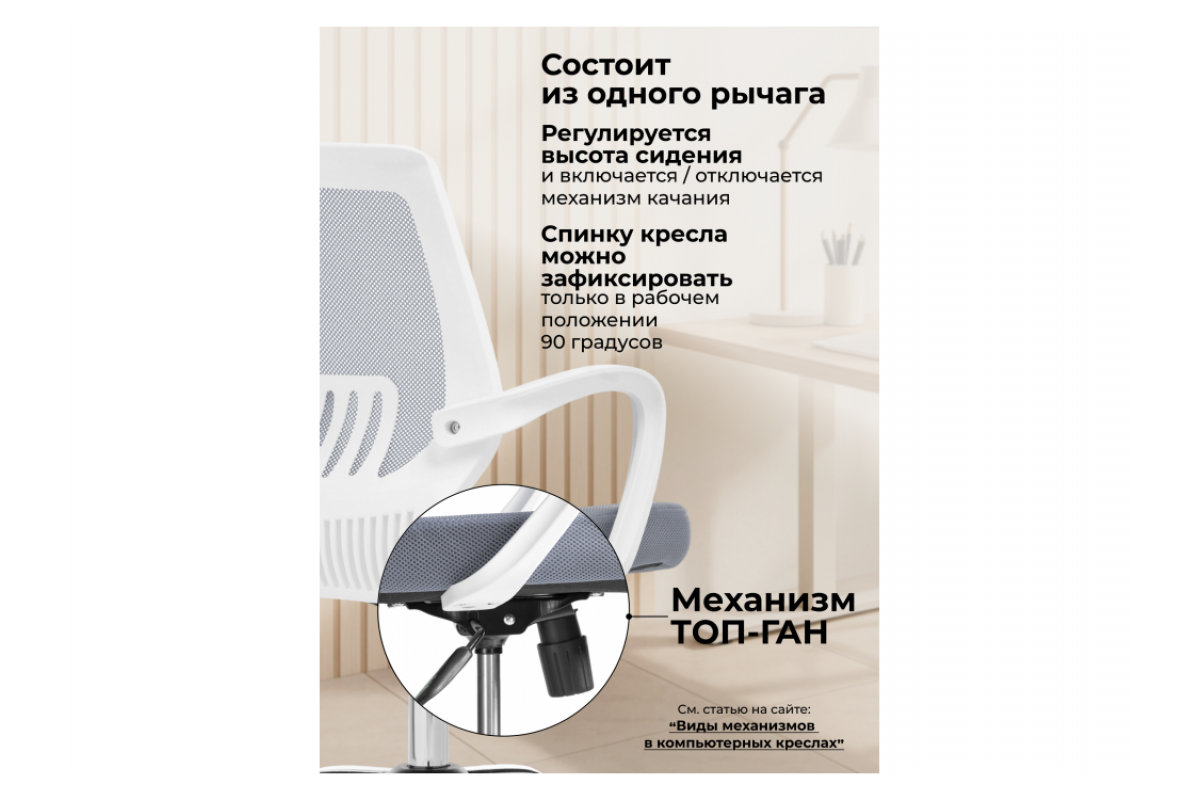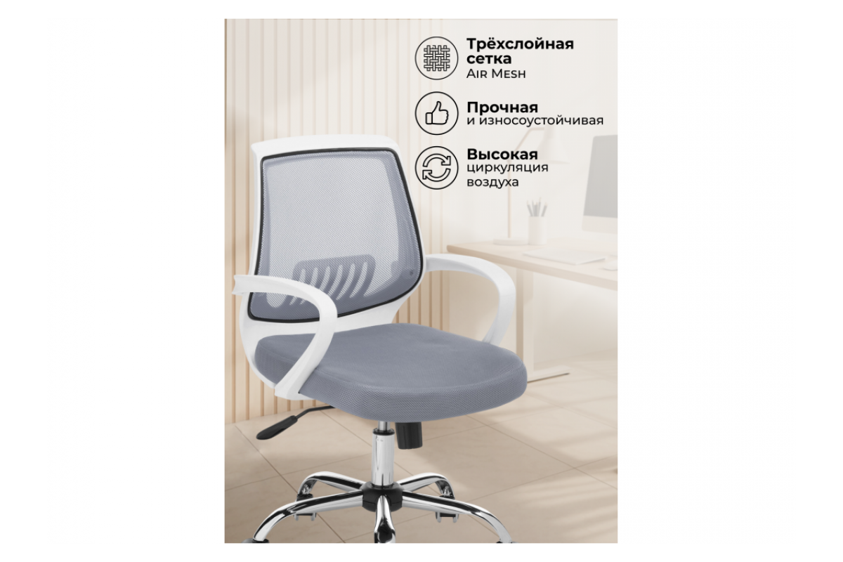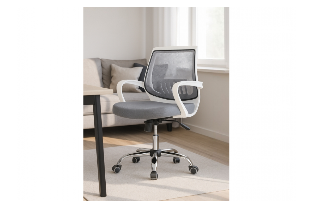 Ergoplus light gray / white Компьютерное кресло Серый, Сетка, Топ-ган, артикул: 10240035
