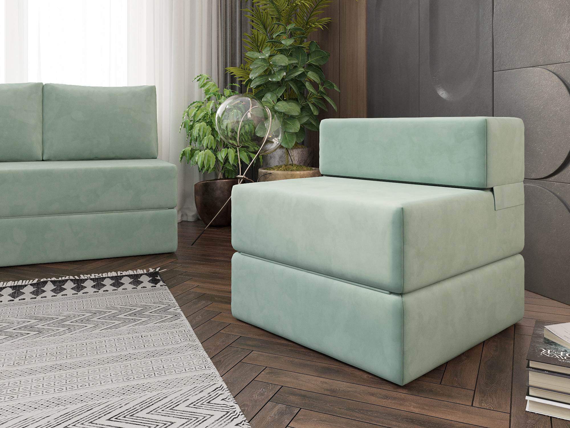 Кресло бескаркасное Алерия Зеленый, Велюр, Раскладной, артикул: 10498306