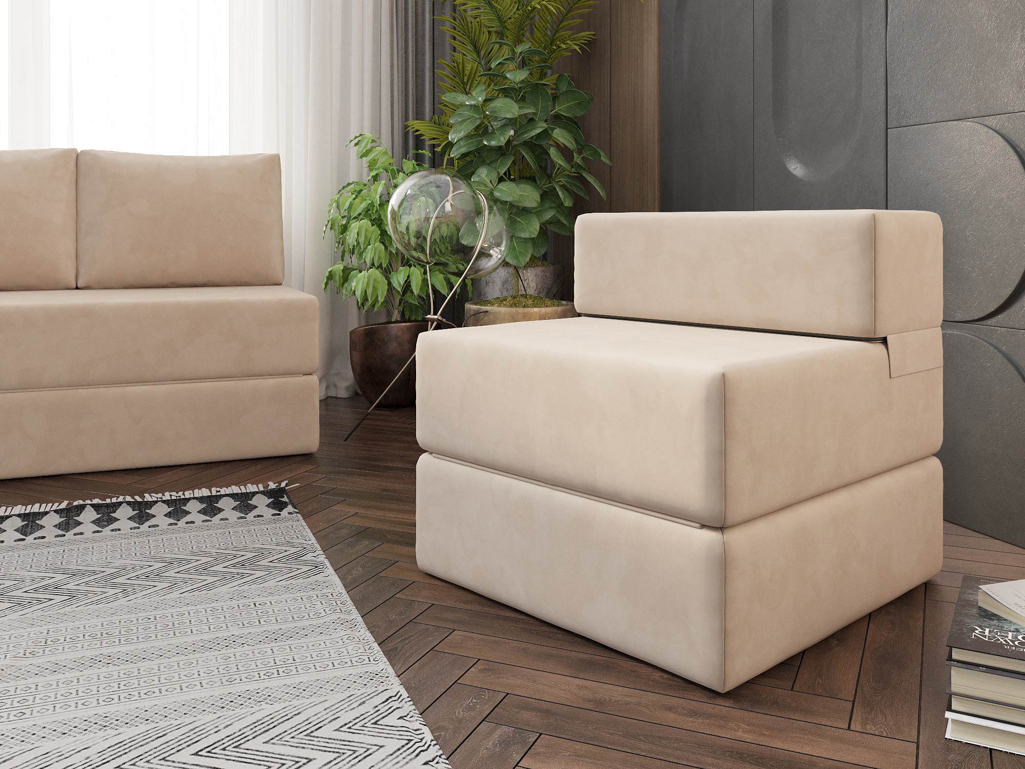Кресло бескаркасное Алерия Бежевый, Велюр, Раскладной, артикул: 10498307