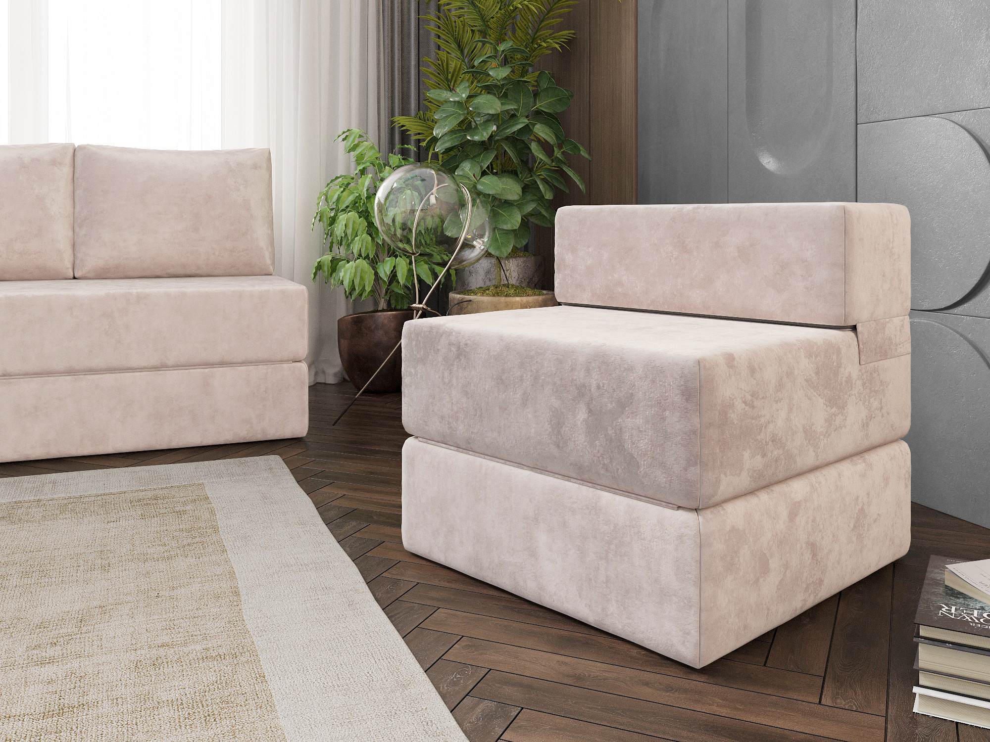 Кресло бескаркасное Алерия Бежевый, Велюр, Раскладной, артикул: 10498299