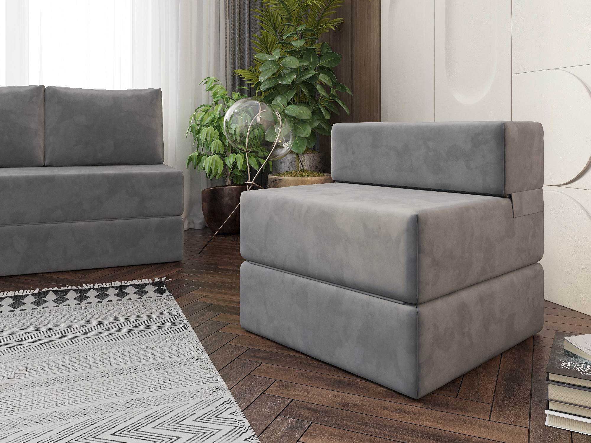 Кресло бескаркасное Алерия Серый, Велюр, Раскладной, артикул: 10498302