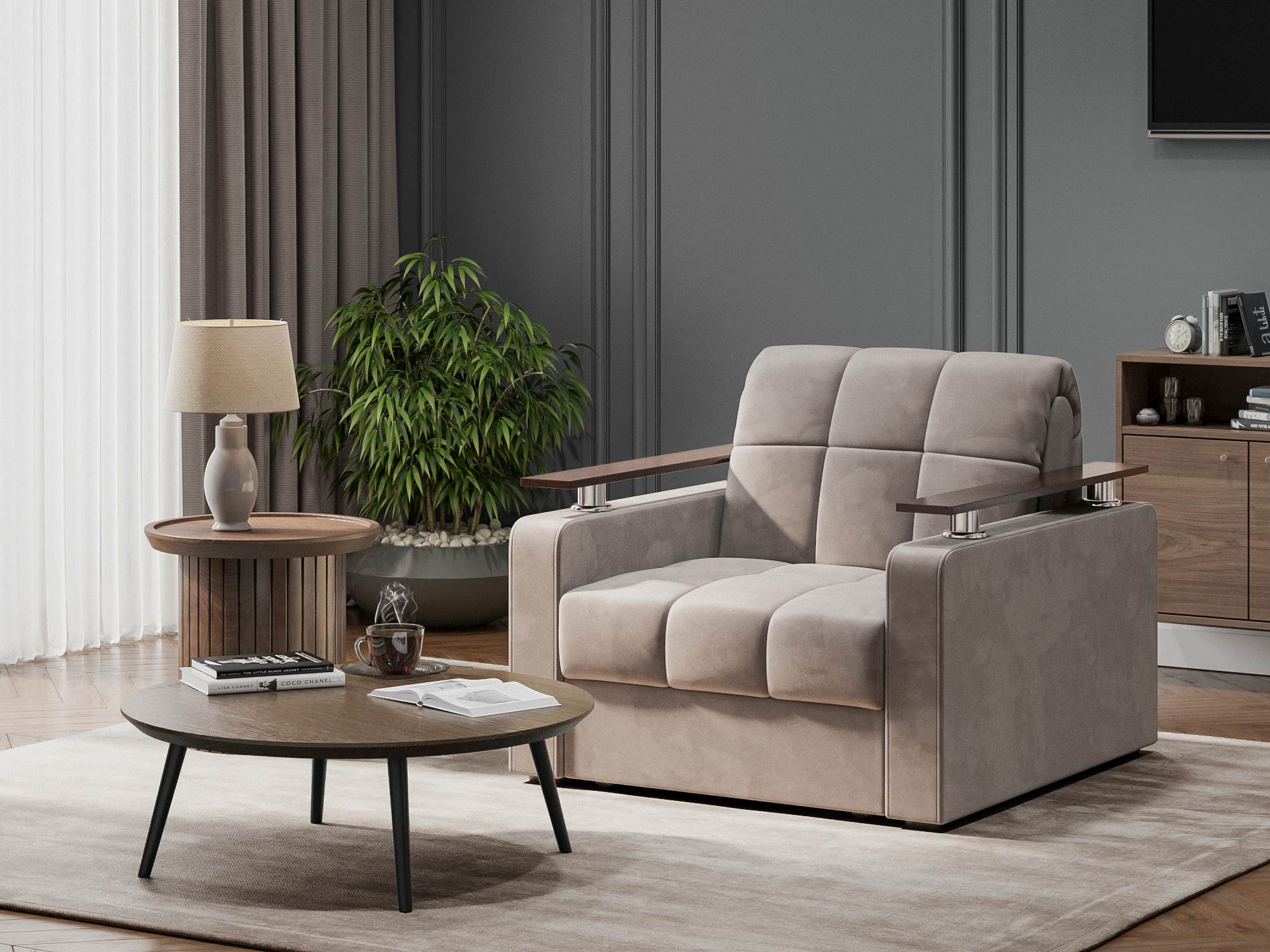 Кресло-кровать Бакли Коричневый, Велюр, Аккордеон (металлокаркас), артикул: 10499181