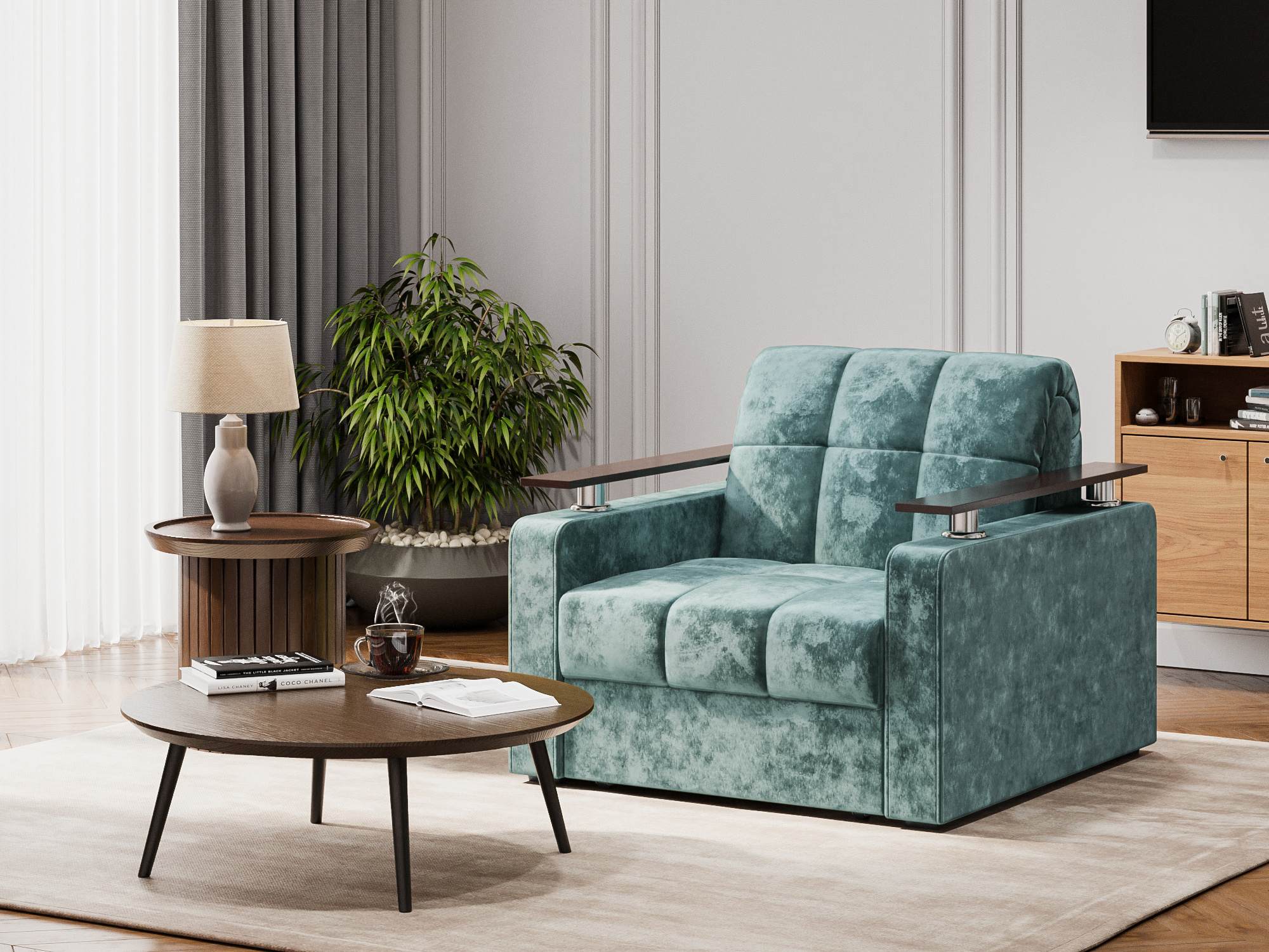 Кресло-кровать Бакли Зеленый, Велюр, Аккордеон (металлокаркас), артикул: 10499192