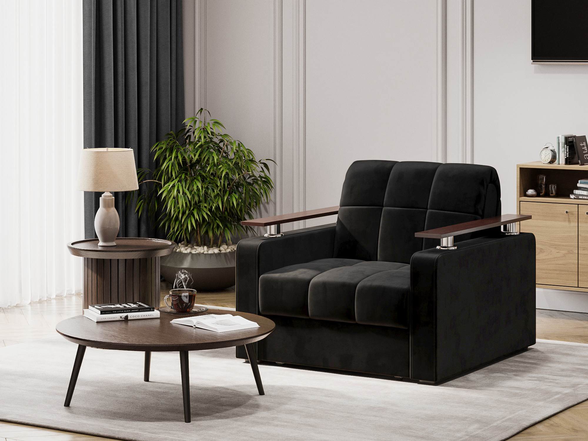 Кресло-кровать Бакли Черный, Велюр, Аккордеон (металлокаркас), артикул: 10499198