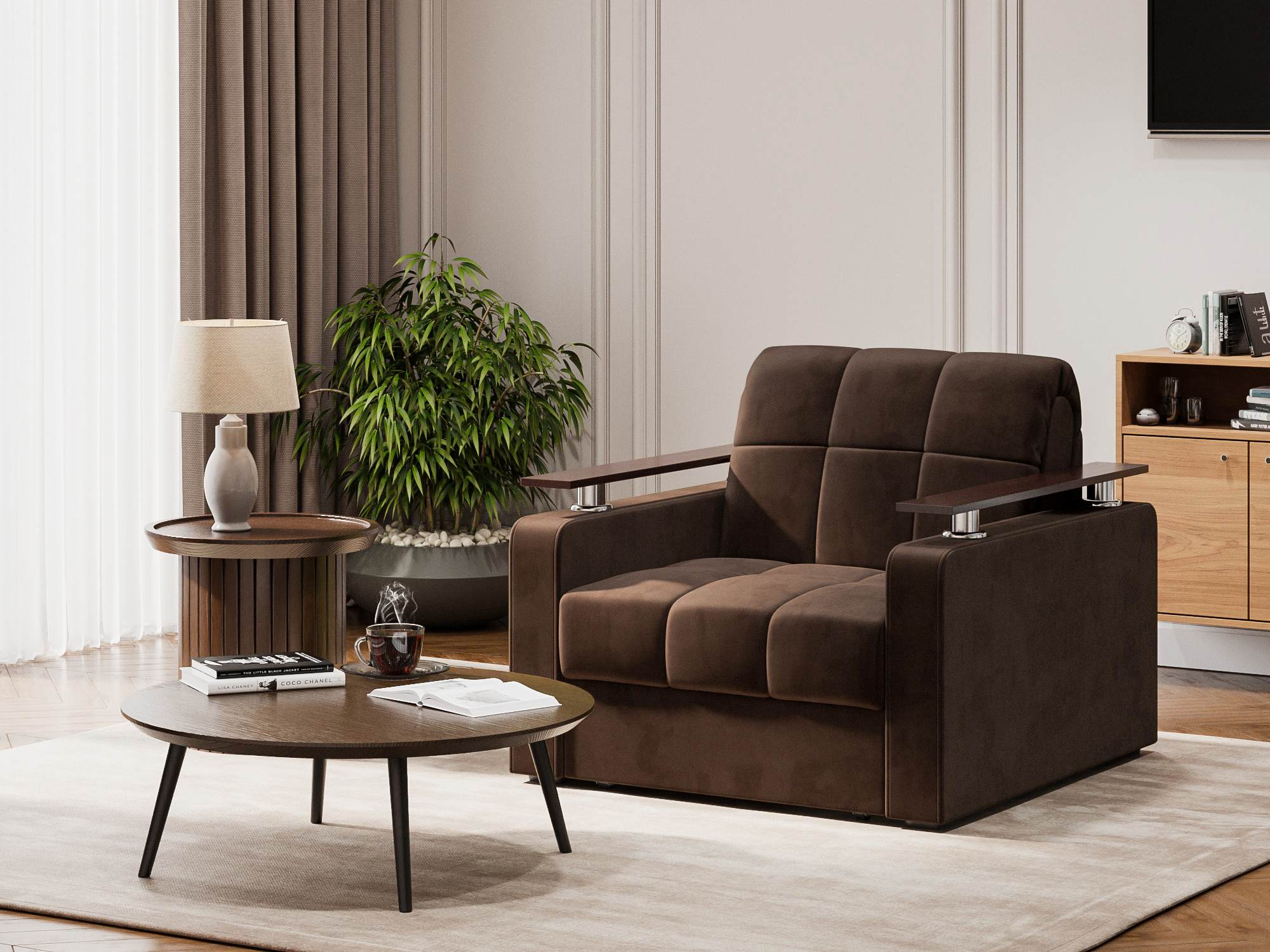 Кресло-кровать Бакли Коричневый, Велюр, Аккордеон (металлокаркас), артикул: 10499200