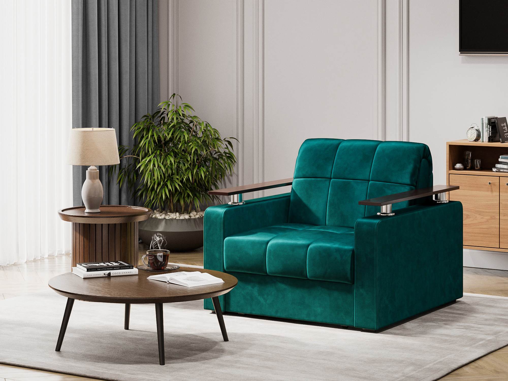 Кресло-кровать Бакли Синий, Вельвет (бархат), Аккордеон (металлокаркас), артикул: 10499202