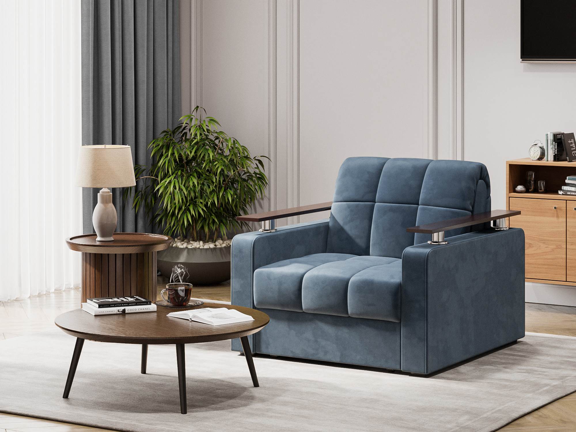 Кресло-кровать Бакли Синий, Велюр, Аккордеон (металлокаркас), артикул: 10499184