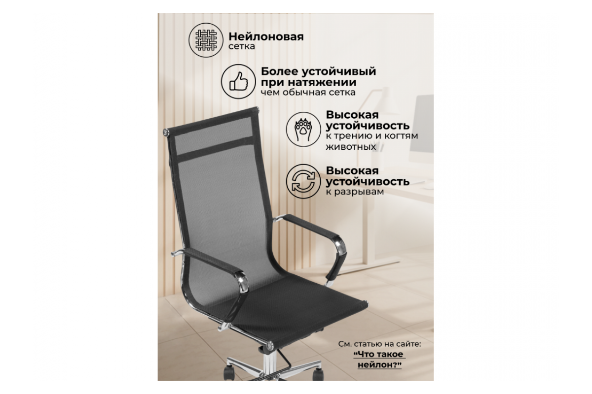 Reus черная сетка / хром Офисное кресло , Сетка, Нейлон, Deep Tilt (глубокое качание), артикул: 10420336