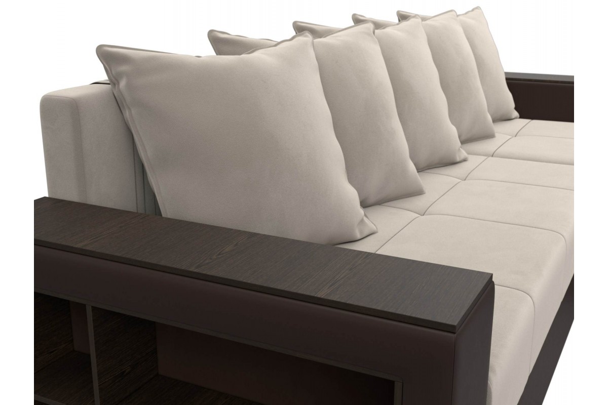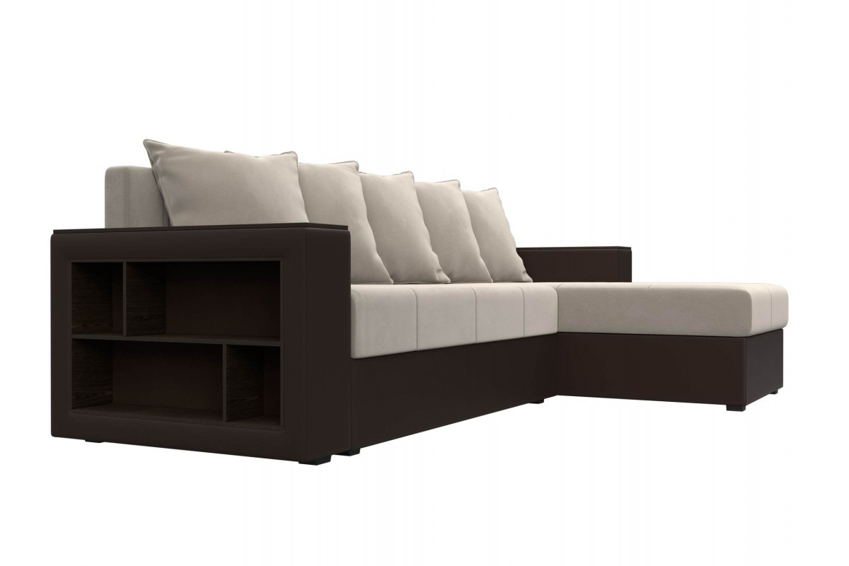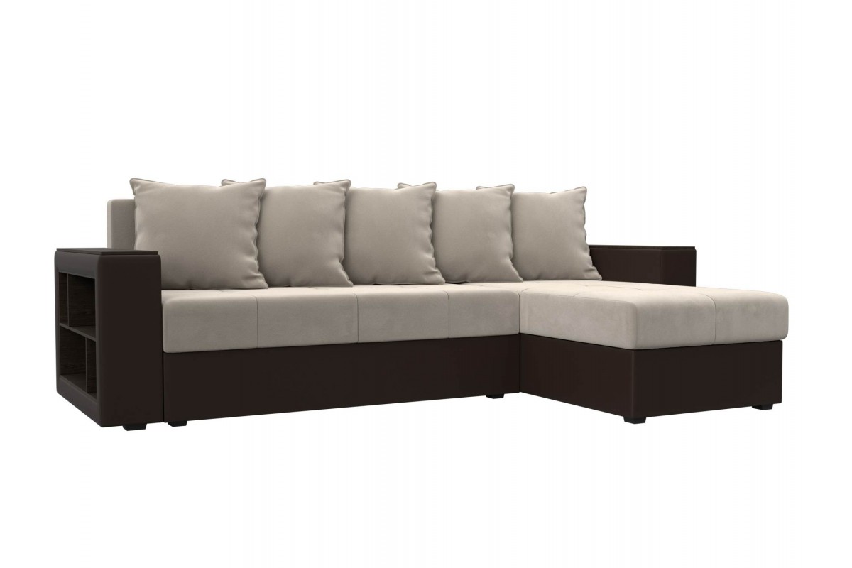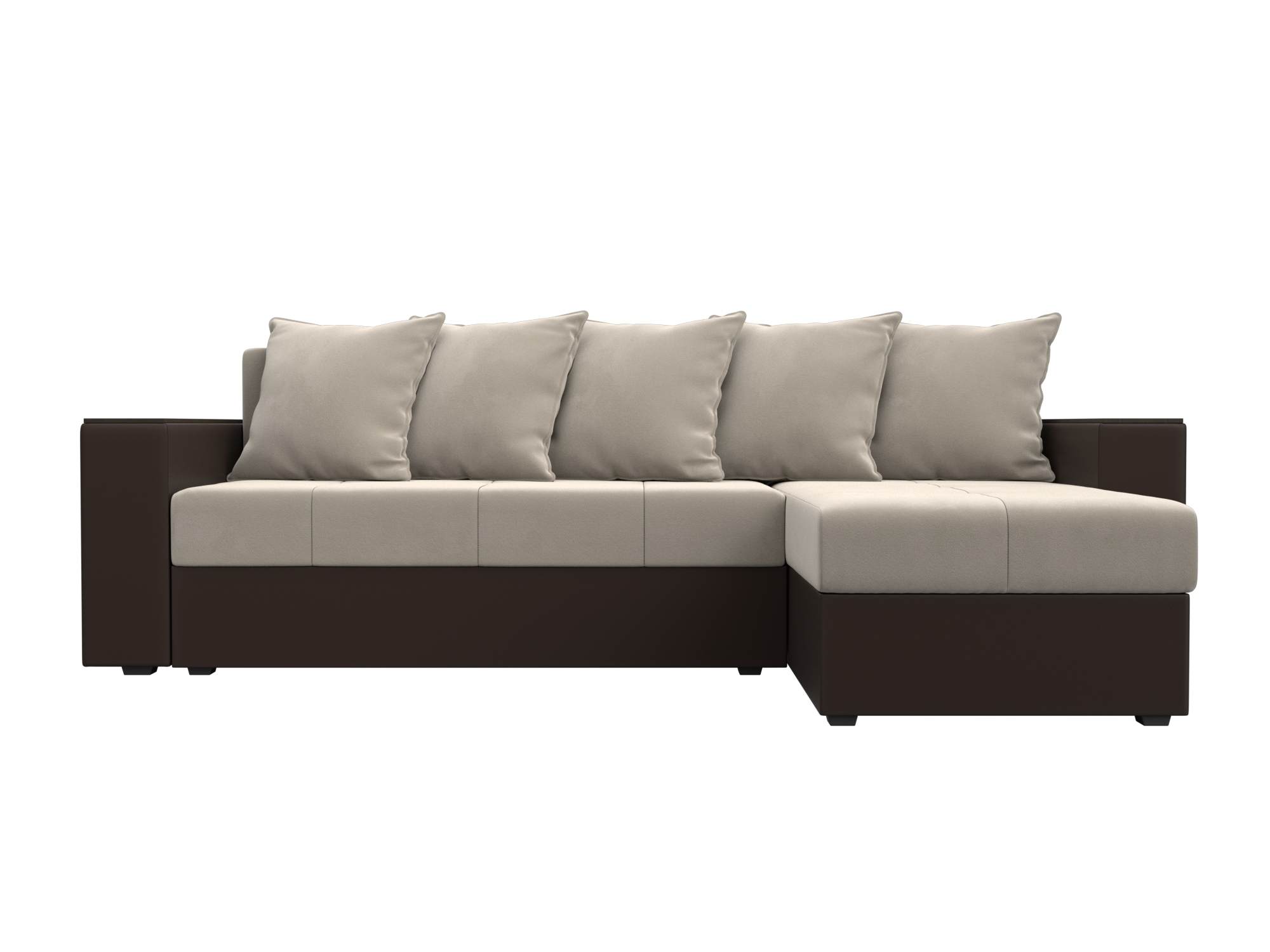 Диван угловой Дубай Коричневый, Бежевый, Микровельвет, Экокожа, Еврокнижка, артикул: 10413377