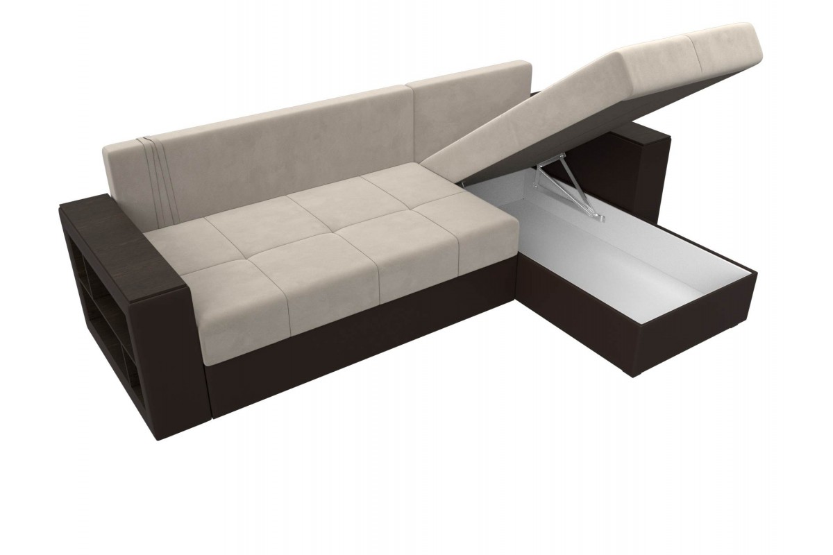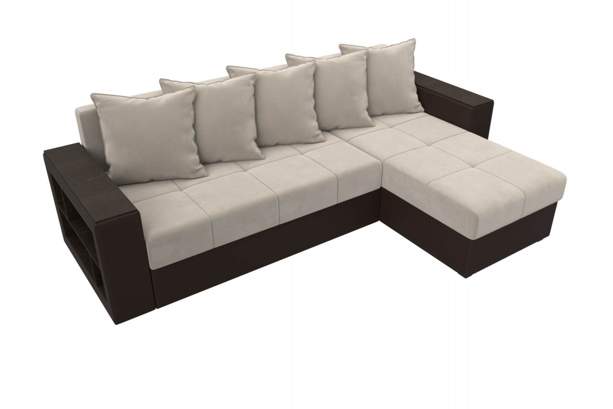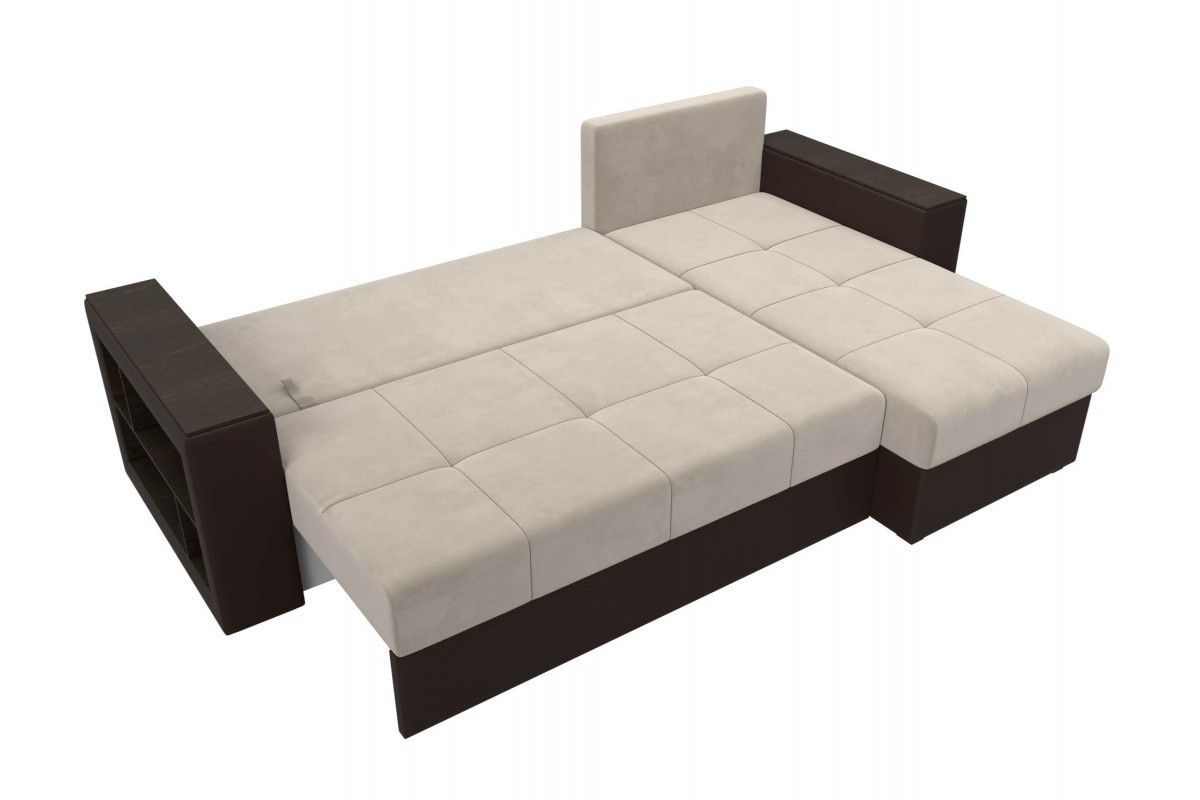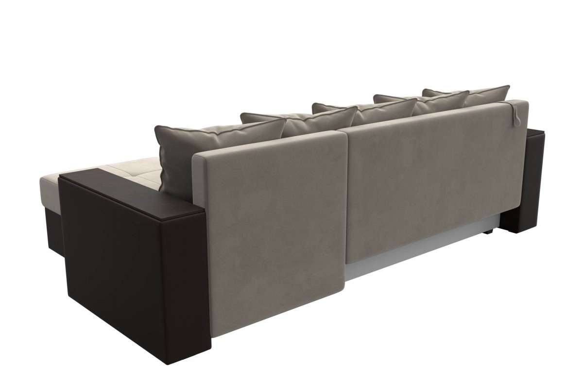 Диван угловой Дубай Коричневый, Бежевый, Микровельвет, Экокожа, Еврокнижка, артикул: 10413377