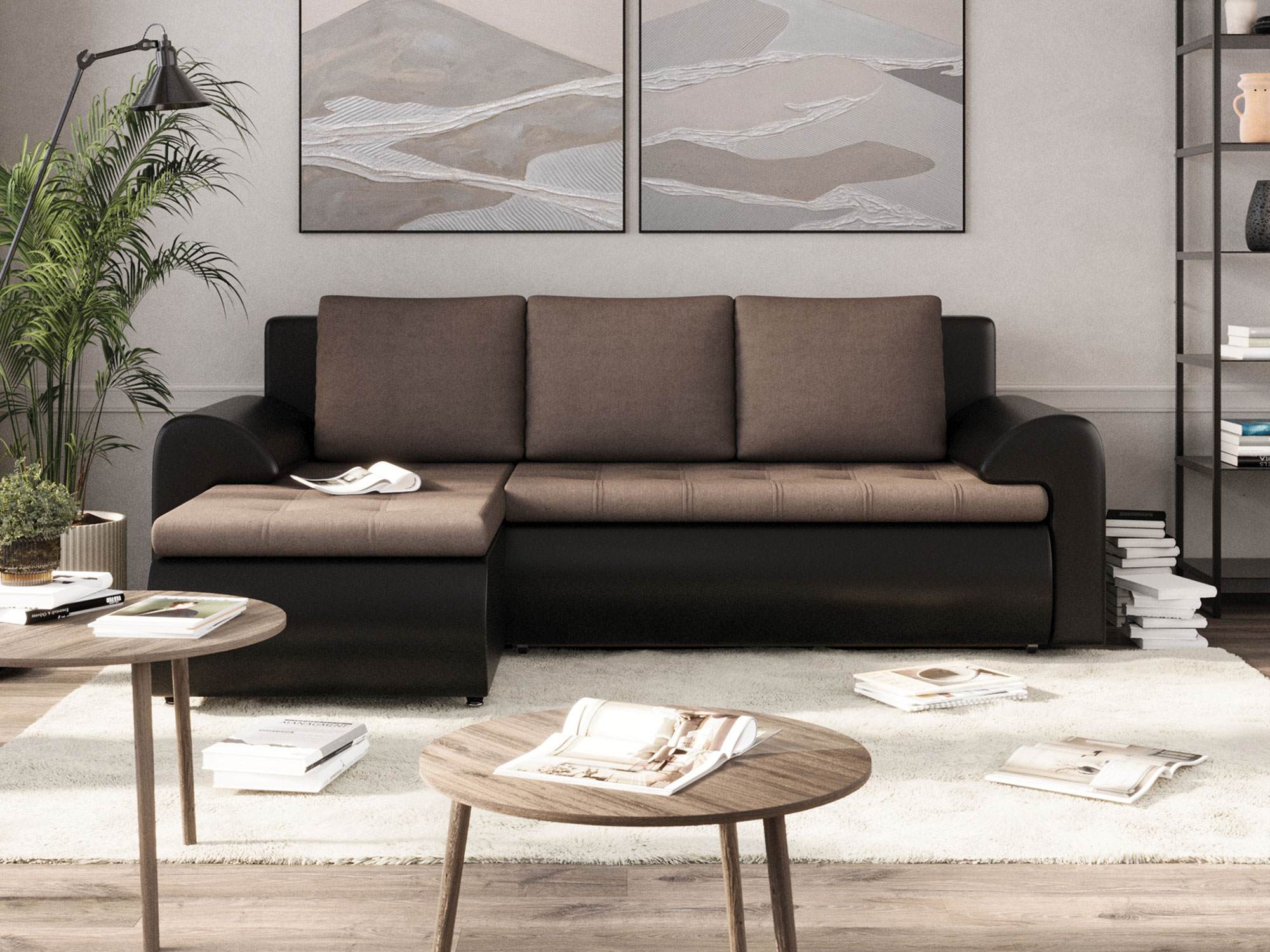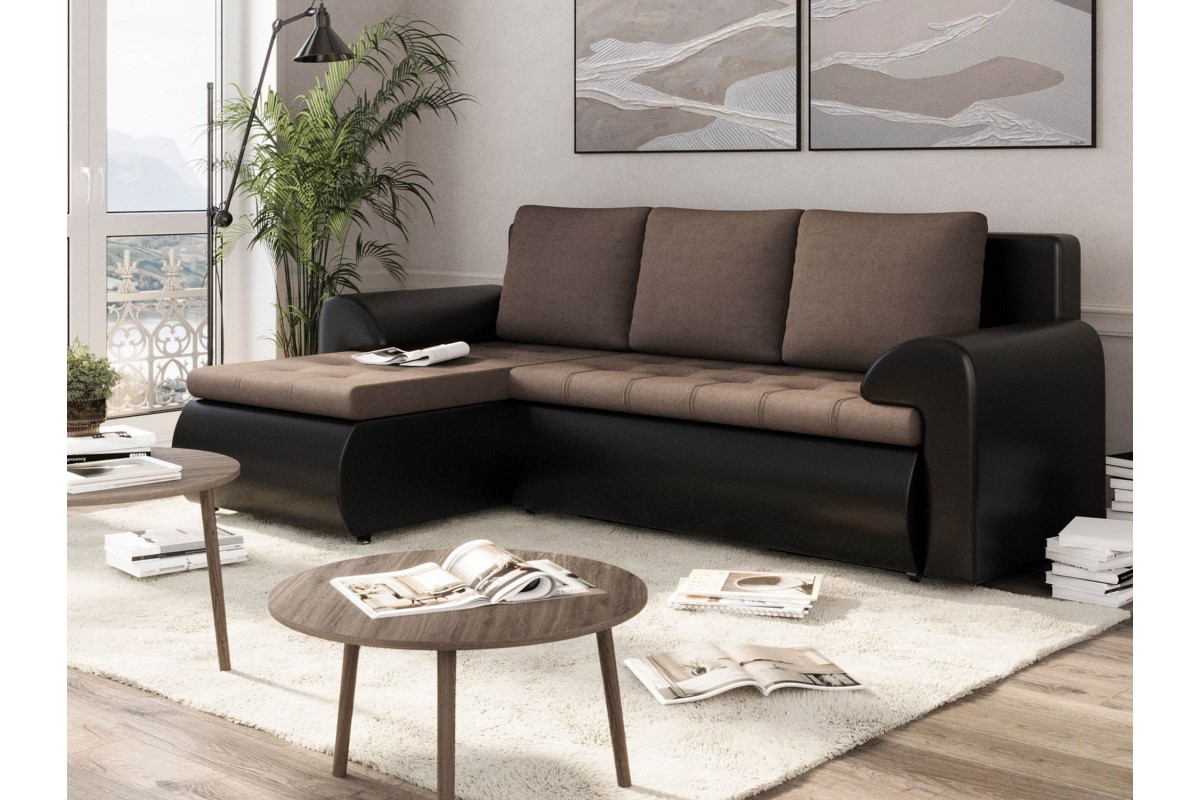 Угловой диван Бремен Левый Коричневый, Искусственная кожа, Велюр, Еврокнижка, артикул: 10117573