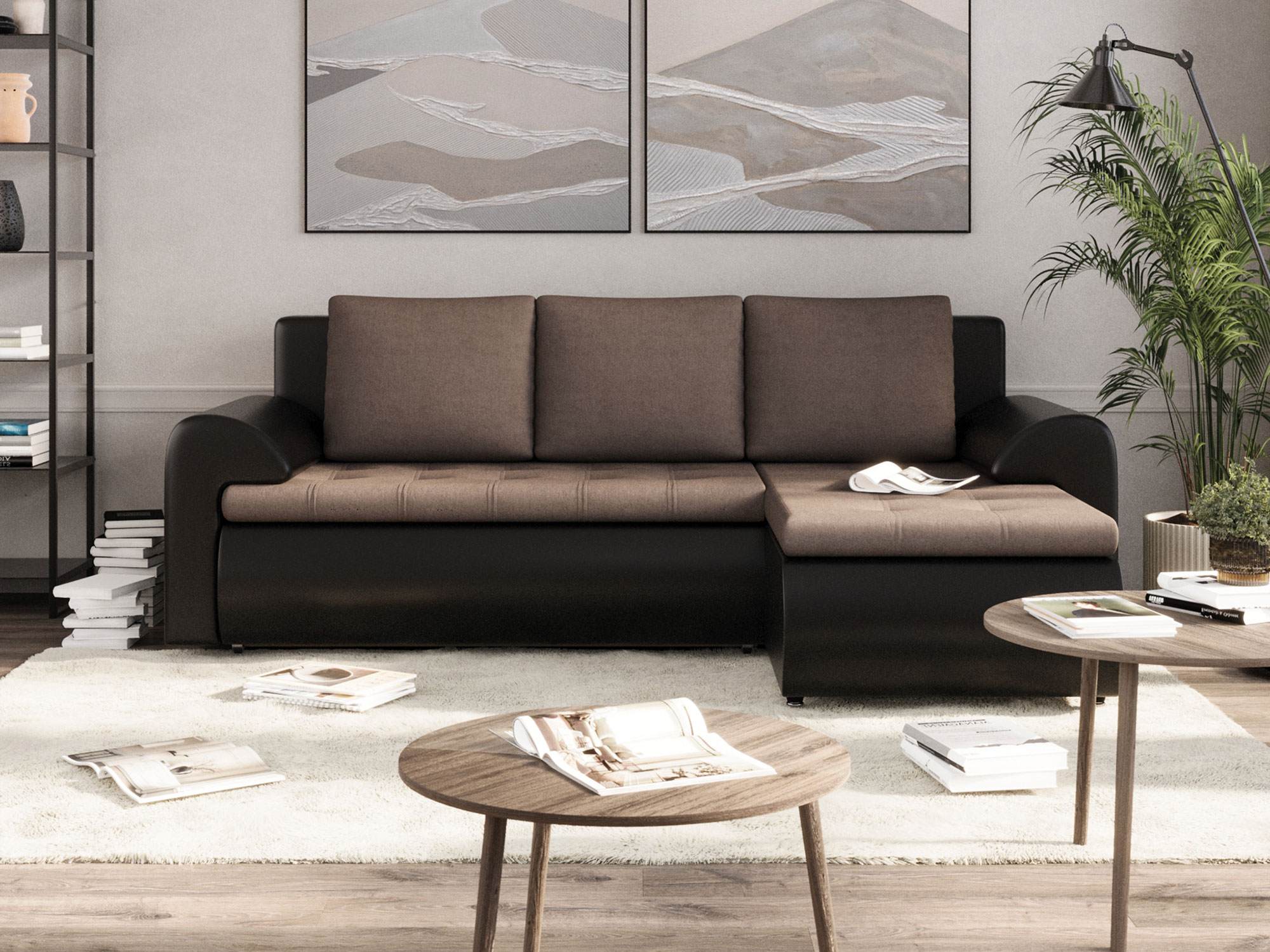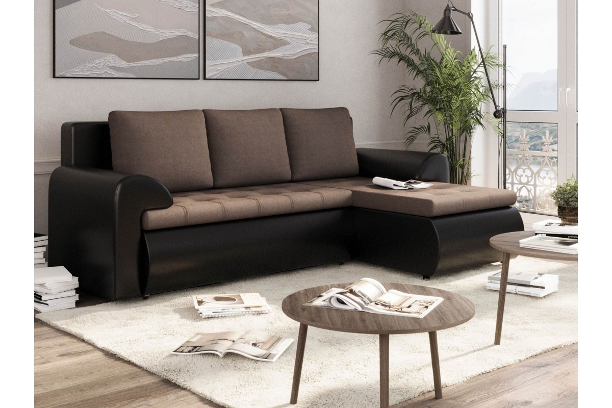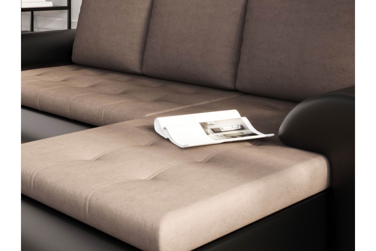 Угловой диван Бремен Правый Коричневый, Искусственная кожа, Велюр, Еврокнижка, артикул: 10117571